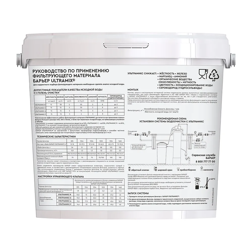 Засыпка BARRIER ULTRAMIX®Р предназначена для использования как в централизованных, так и нецентрализованных системах водоснабжения, включая родники, колодцы и скважины. Очищенная вода может быть использована как для хозяйственно-бытовых нужд, так и для промышленных целей. Если же нужно получить питьевую воду — рекомендуется установить систему обратного осмоса.