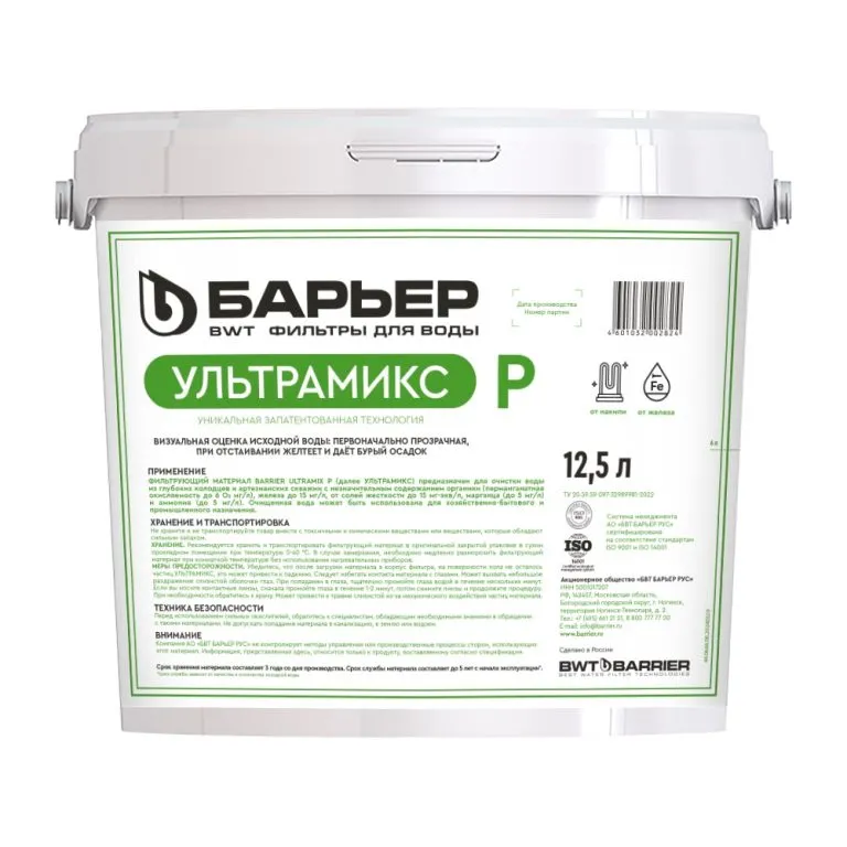 Позволяет осуществить комплексную очистку от органического железа, марганца и солей жесткости, органических соединений в корпусе одного фильтра;