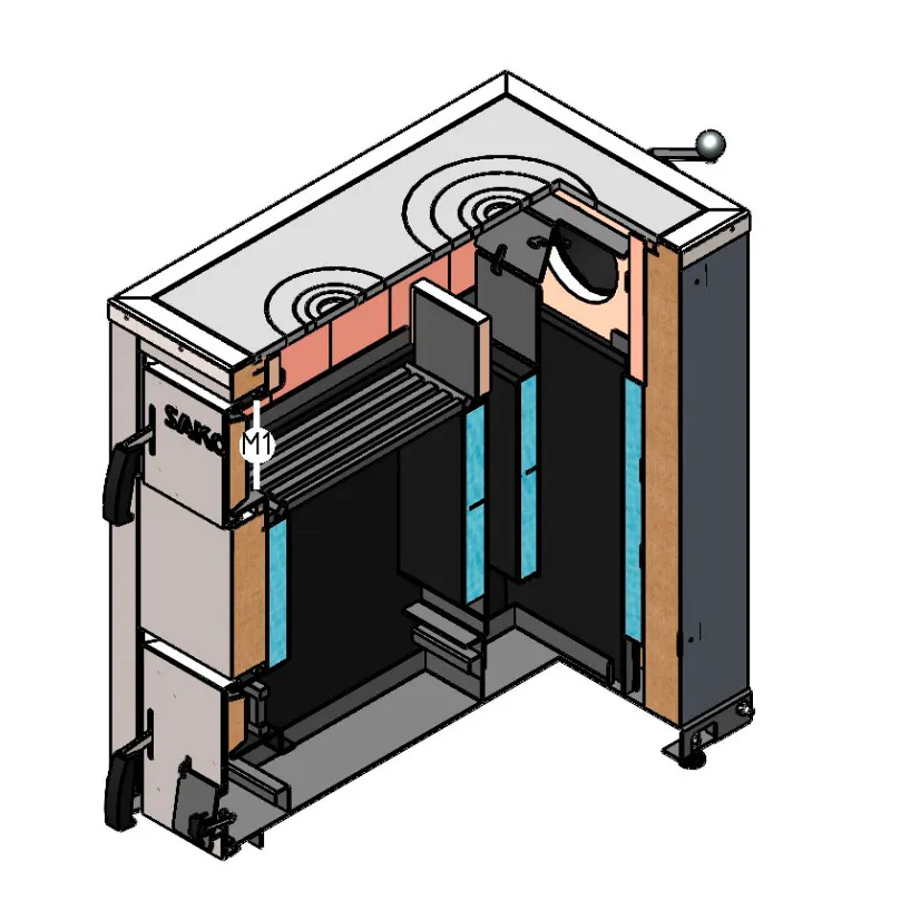 Основной рабочий узел котла, камера сгорания, оснащена колосниковой решеткой, которую можно располагать в двух различных позициях.